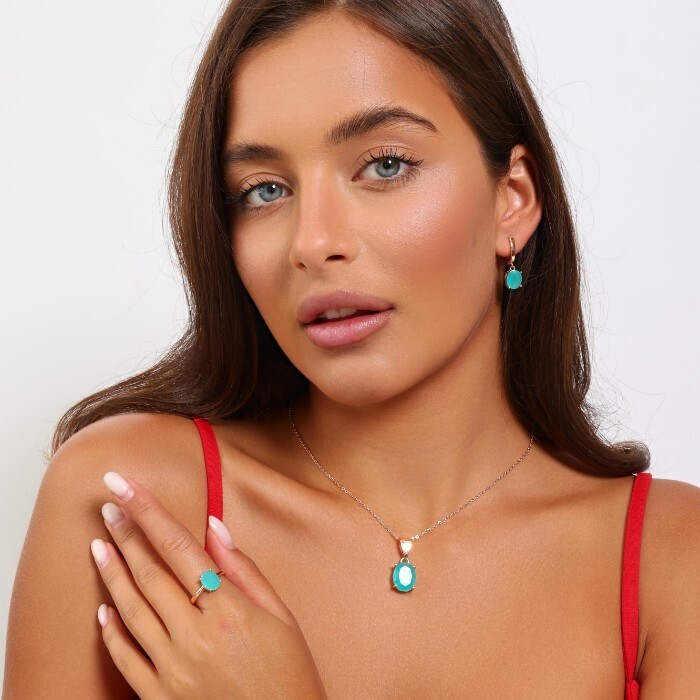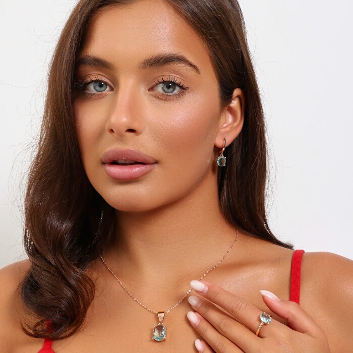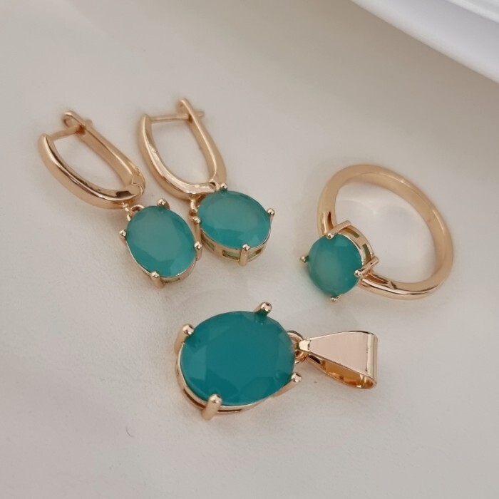 Комплект ювелирной бижутерии коллекция "Дубай" серьги, кулон и кольцо 17 р, покрытие позолота, вставка: фианит, цвет: голубой тиффани матовый, арт.215.507-17 2 фото
