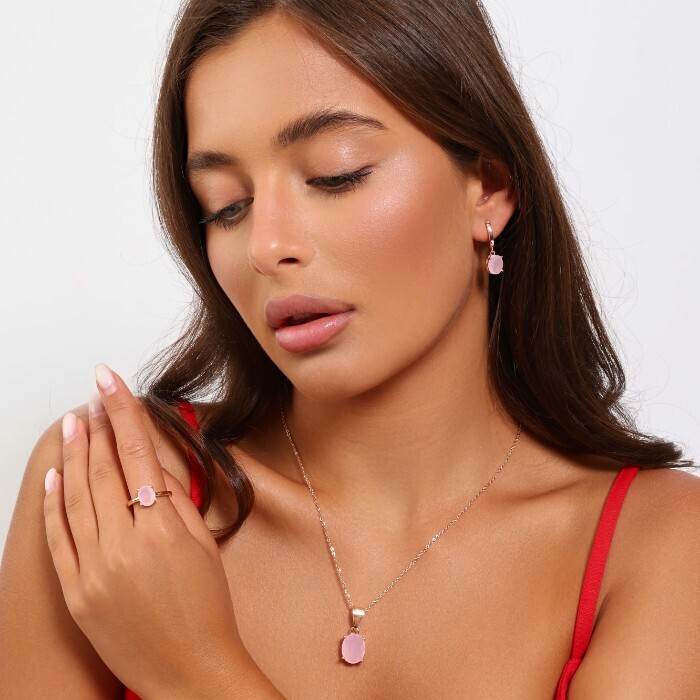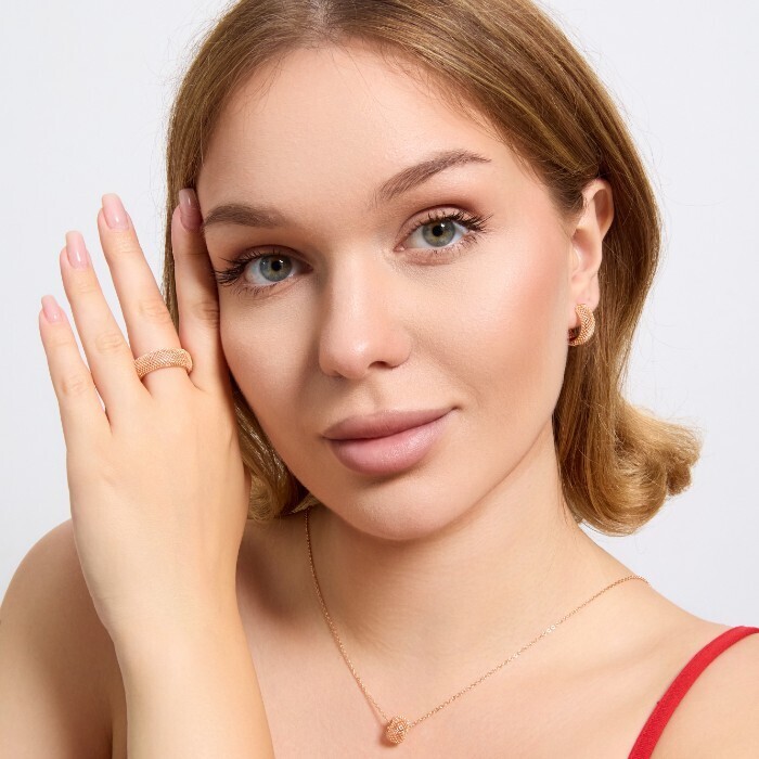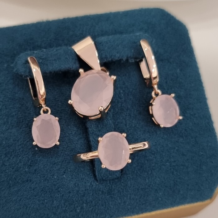 Комплект ювелирной бижутерии коллекция "Дубай" серьги, кулон и кольцо 17 р, покрытие позолота, вставка: фианит, цвет: розовый матовый, арт.215.509-17 2 фото