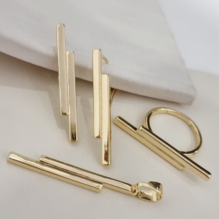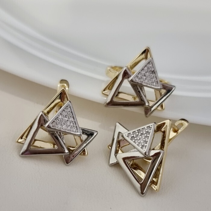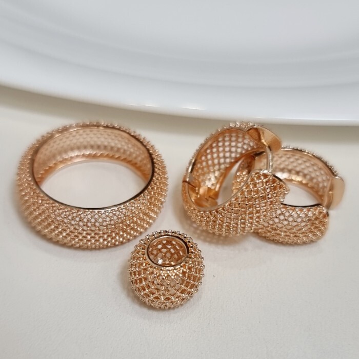 Комплект ювелирной бижутерии Итальянское золото (покрытие желтое 14к), серьги и кольцо 20 р, арт.313.215-20 2 фото