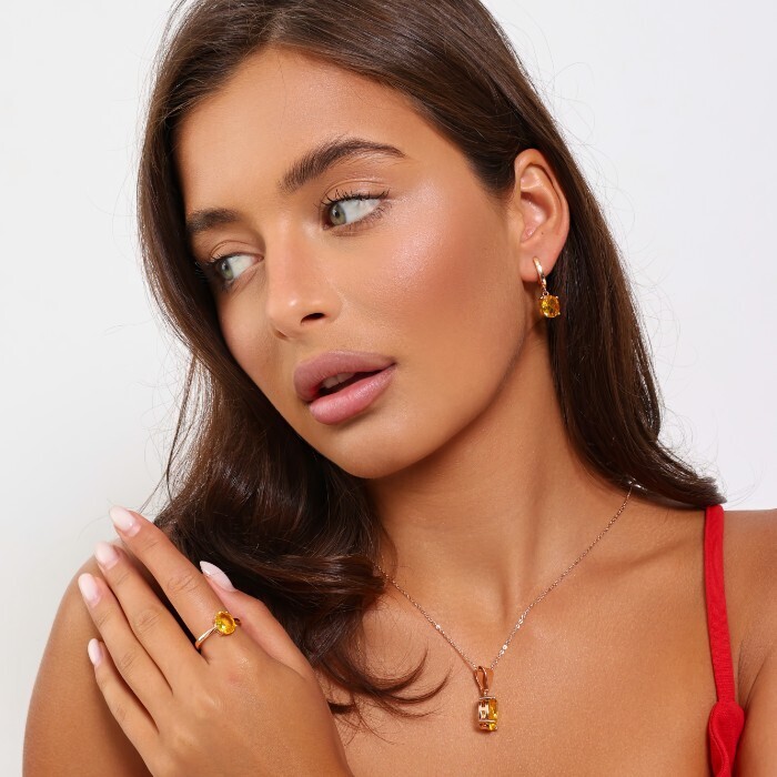 Комплект ювелирной бижутерии коллекция "Дубай" серьги, кулон и кольцо 20 р, покрытие позолота, вставка: фианит, цвет: желтый, арт.215.506-20 2 фото