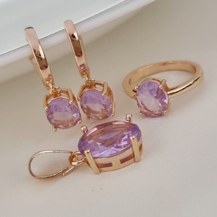 Комплект ювелирной бижутерии коллекция "Дубай" серьги, кулон и кольцо 17 р, покрытие позолота, вставка: фианит, цвет: фиолетовый, арт.215.513-17 2 фото