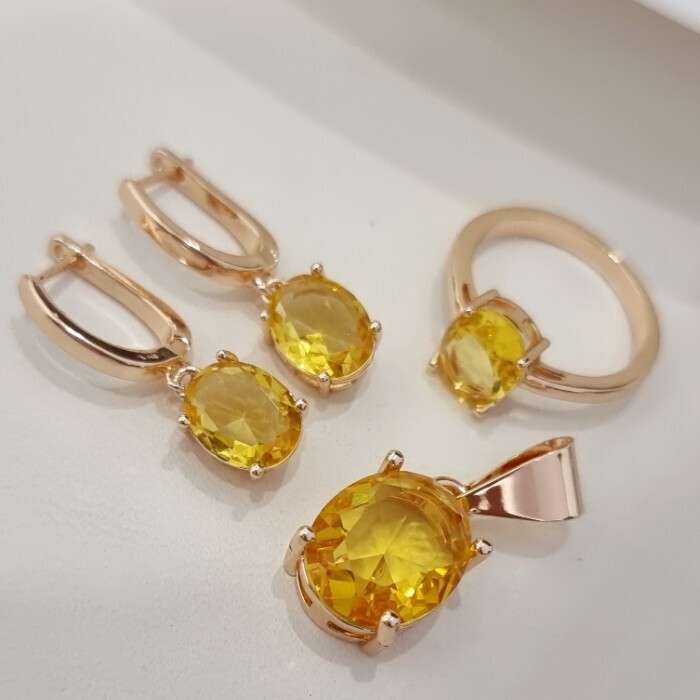 Комплект ювелирной бижутерии Итальянское золото (покрытие желтое 14к), серьги, кулон и кольцо 18 р, арт.313.216-18 2 фото