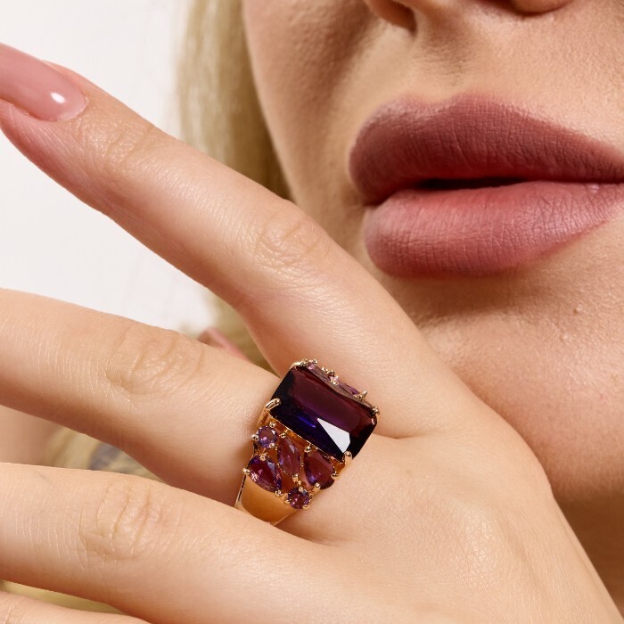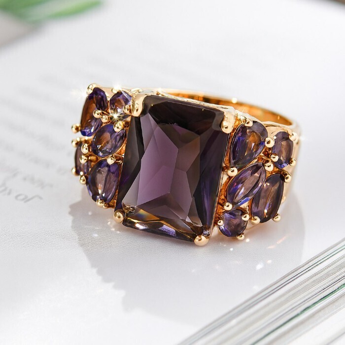 Кольцо 19 р ювелирная бижутерия коллекция "Дубай", покрытие позолота, вставка: фианиты, цвет: фиолетовый, арт.313.349-19 2 фото