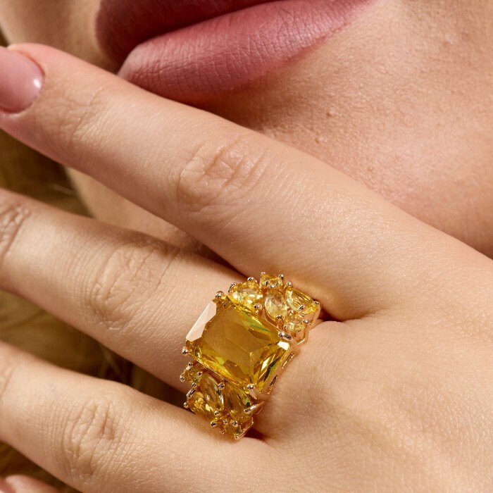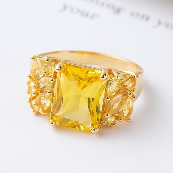 Кольцо 19 р ювелирная бижутерия коллекция "Дубай", покрытие позолота, вставка: фианиты, цвет: желтый, арт.313.354-19 2 фото