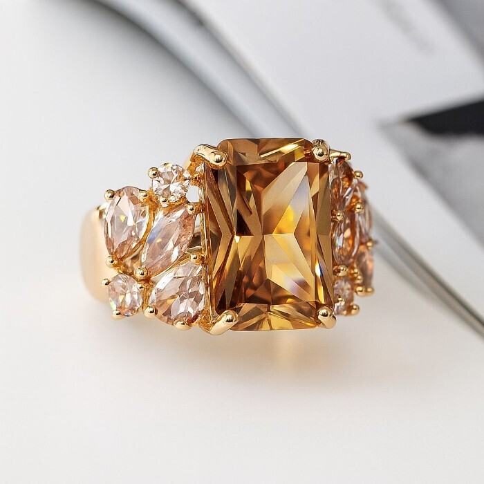 Кольцо 19 р ювелирная бижутерия коллекция "Дубай", покрытие позолота, вставка: фианиты, цвет: шампань, арт.313.355-19 2 фото