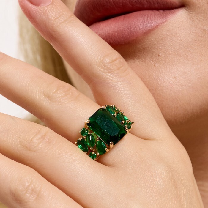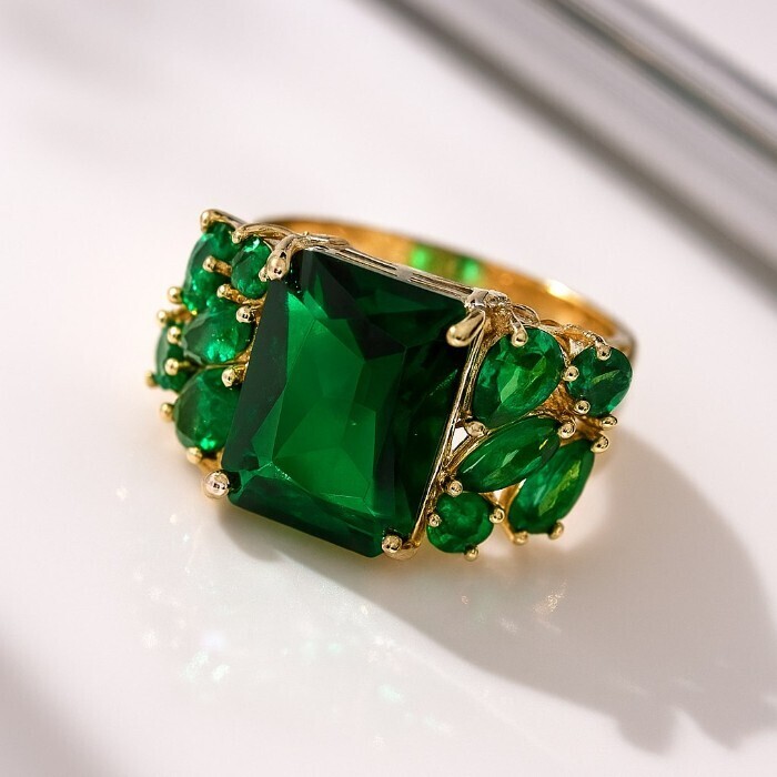 Кольцо 17 р ювелирная бижутерия коллекция "Дубай", покрытие позолота, вставка: фианиты, цвет: изумрудный, арт.313.350-17 2 фото