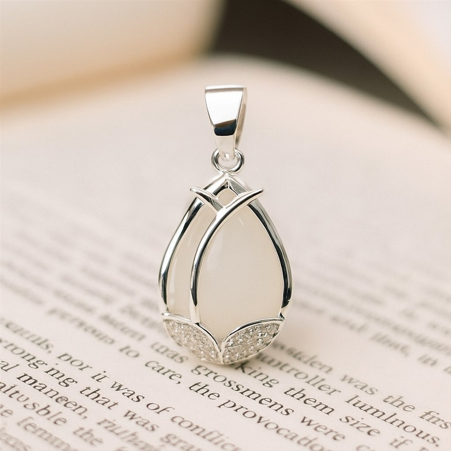 Кулон с камнем, покрытие: посеребрение, вставка: цирконы и искусственный лунный камень, арт.007.072