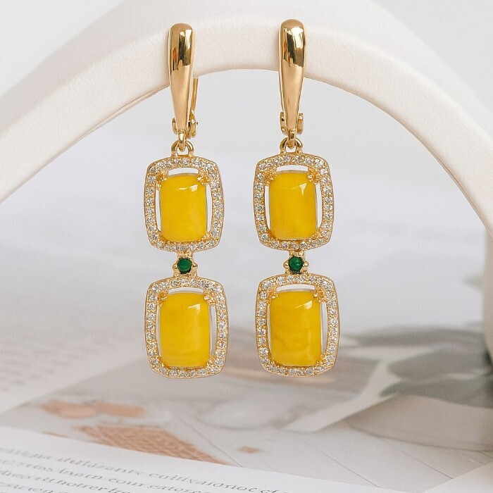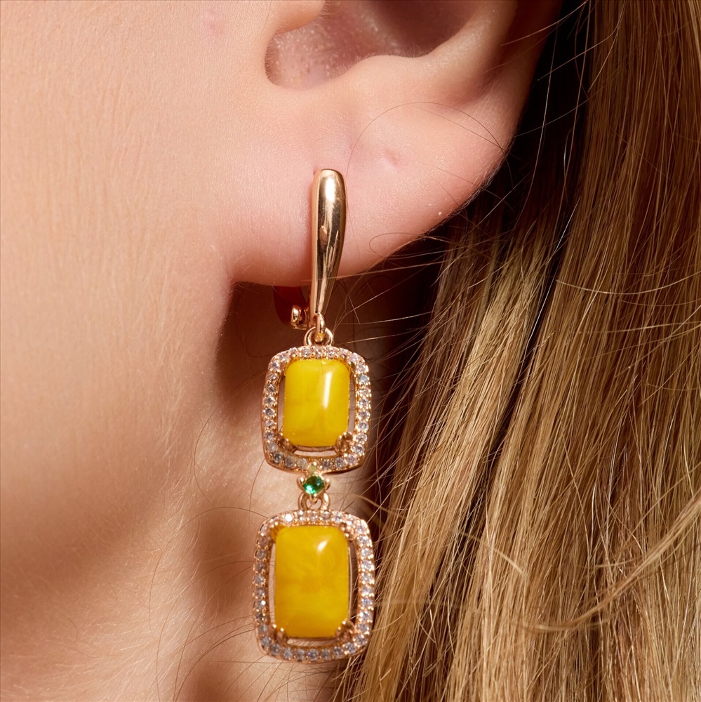 Серьги длинные ювелирная бижутерия коллекция "Дубай", покрытие позолота, вставка: пластик и цирконы, цвет: желтый и прозрачный, арт.313.392 2 фото