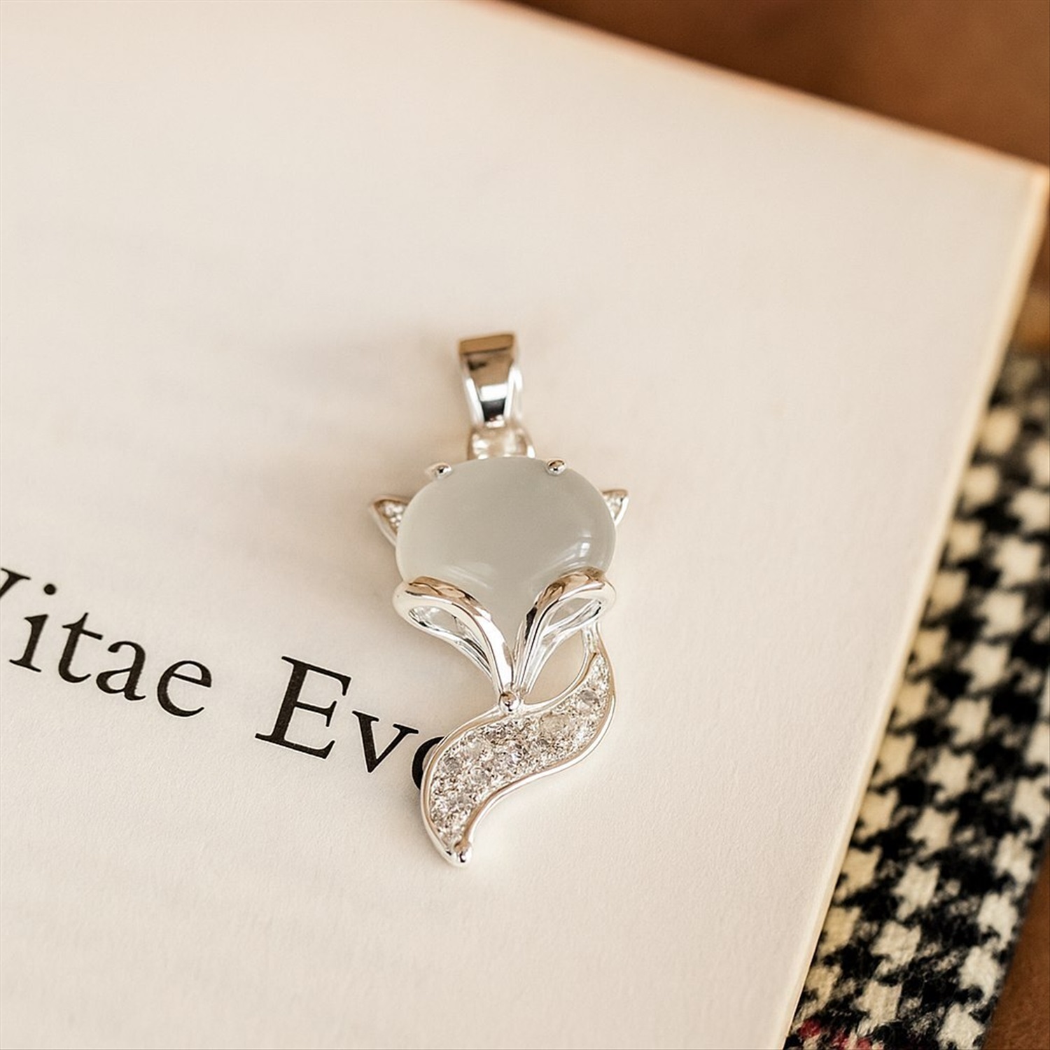 Кулон лисенок, покрытие: посеребрение, вставка: цирконы и искусственный лунный камень, арт.007.074