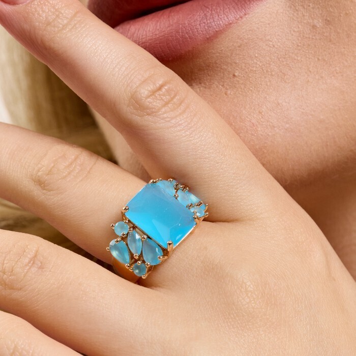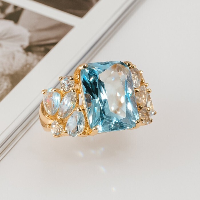 Кольцо 17 р ювелирная бижутерия коллекция "Дубай", покрытие позолота, вставка: фианиты, цвет: голубой, арт.313.356-17 2 фото