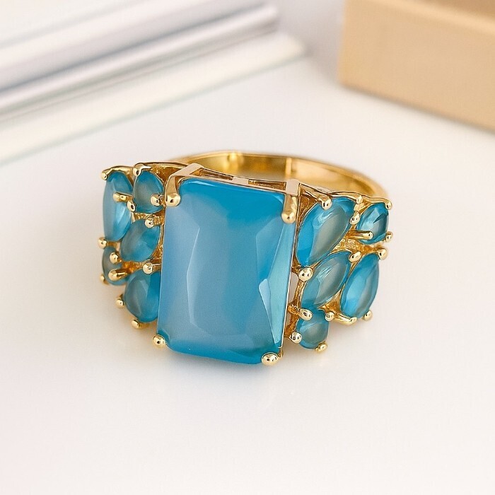 Кольцо 17 р ювелирная бижутерия коллекция "Дубай", покрытие позолота, вставка: фианиты, цвет: тиффани матовый, арт.313.351-17 2 фото
