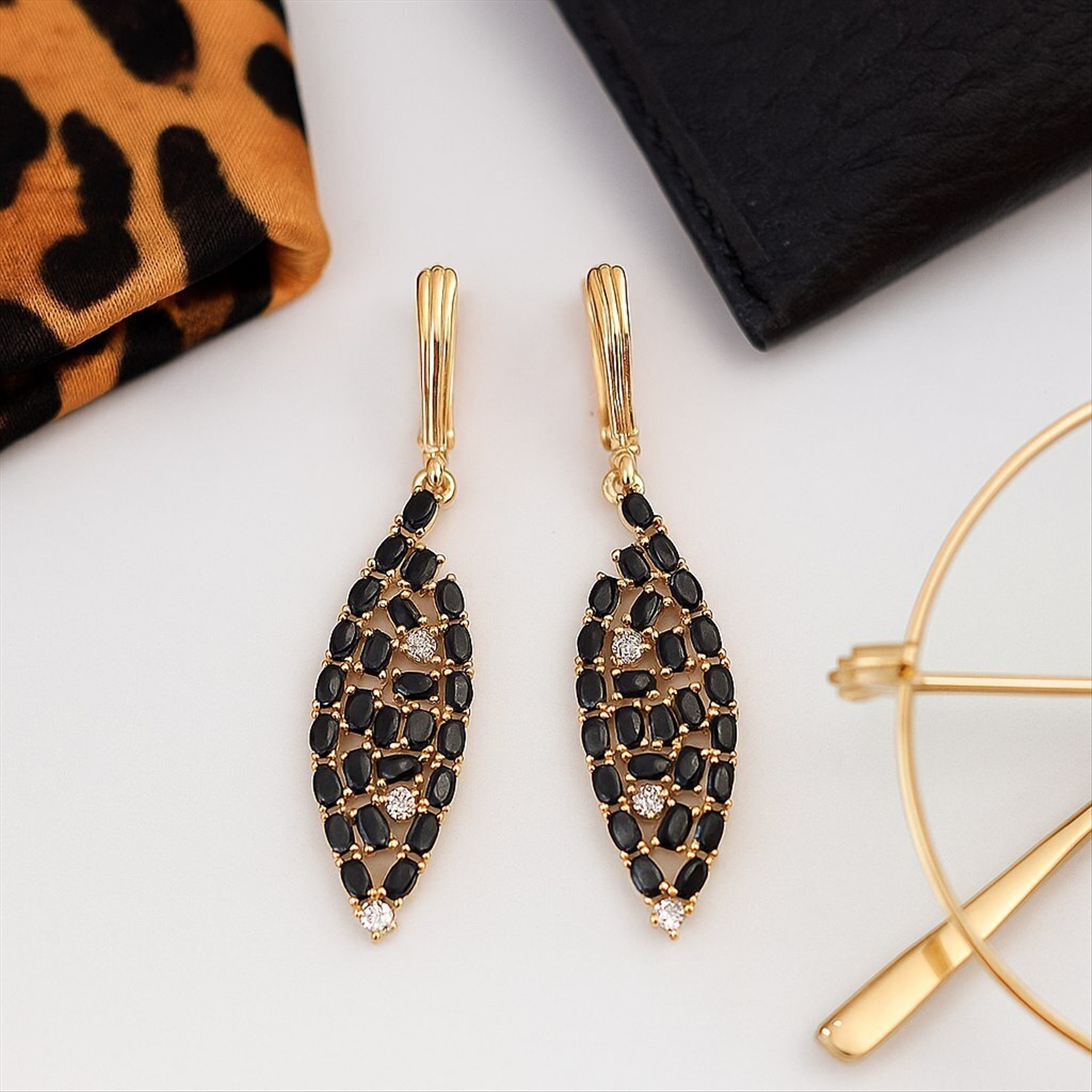 Серьги длинные коллекция "Дубай" покрытие: позолота, вставка: фианиты, цвет: черный, арт.007.043