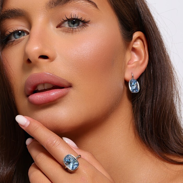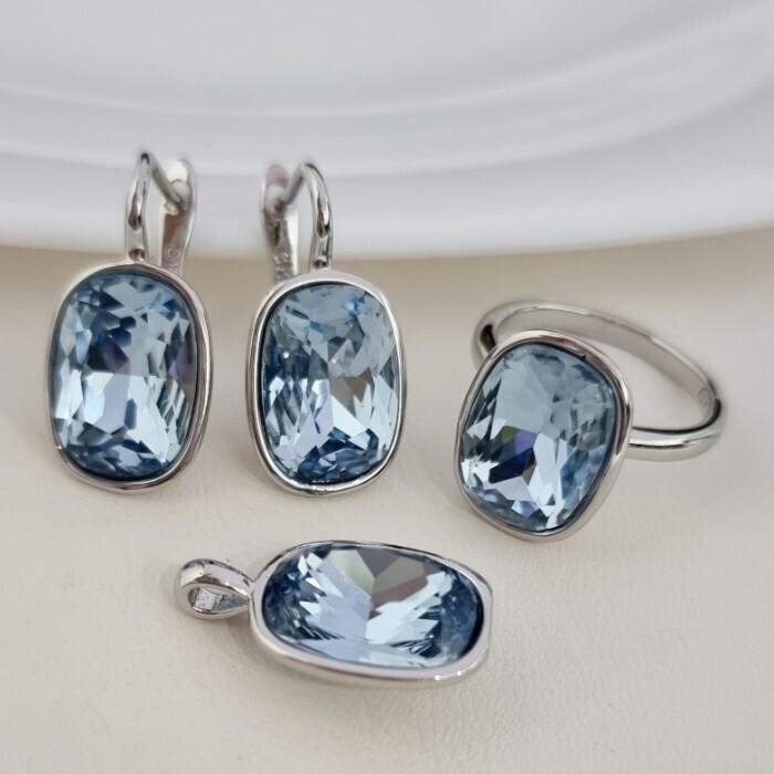 Комплект ювелирной бижутерии серьги, кулон и кольцо 19 р, покрытие посеребрение, вставка: искусственный кристалл, цвет: небесно-голубой, арт.314.865-19 2 фото
