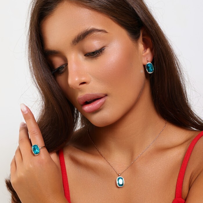Комплект ювелирной бижутерии коллекция "Дубай" серьги, кулон и кольцо 20 р, покрытие позолота, вставка: искусственный кристалл, цвет: морская волна, арт.314.854-20 2 фото