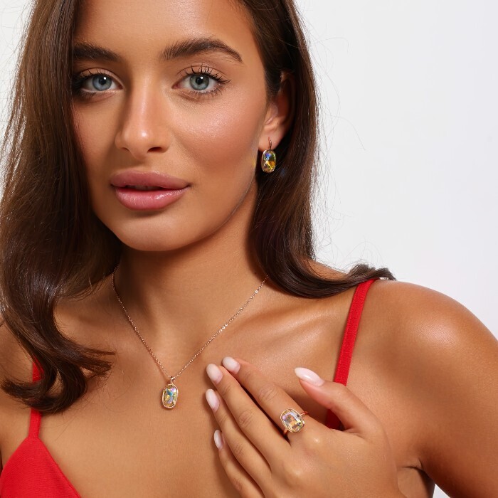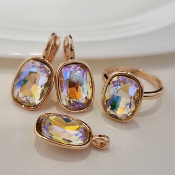 Комплект ювелирной бижутерии коллекция "Дубай" серьги, кулон и кольцо 17 р, покрытие позолота, вставка: искусственный кристалл, цвет: желтый хамелеон, арт.314.863-17 2 фото