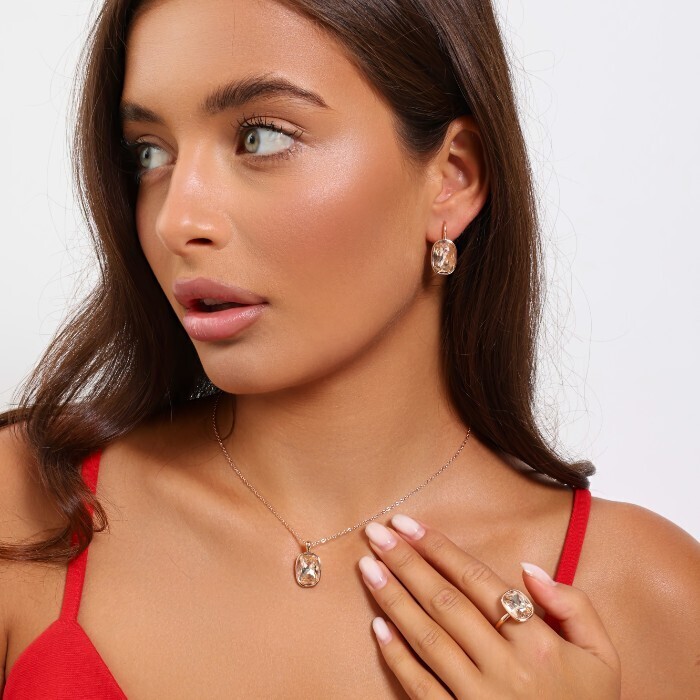 Комплект ювелирной бижутерии коллекция "Дубай" серьги, кулон и кольцо 17 р, покрытие позолота, вставка: искусственный кристалл, цвет: шампань, арт.314.862-17 2 фото