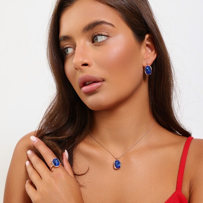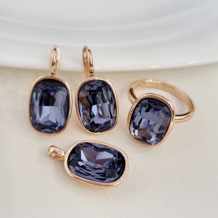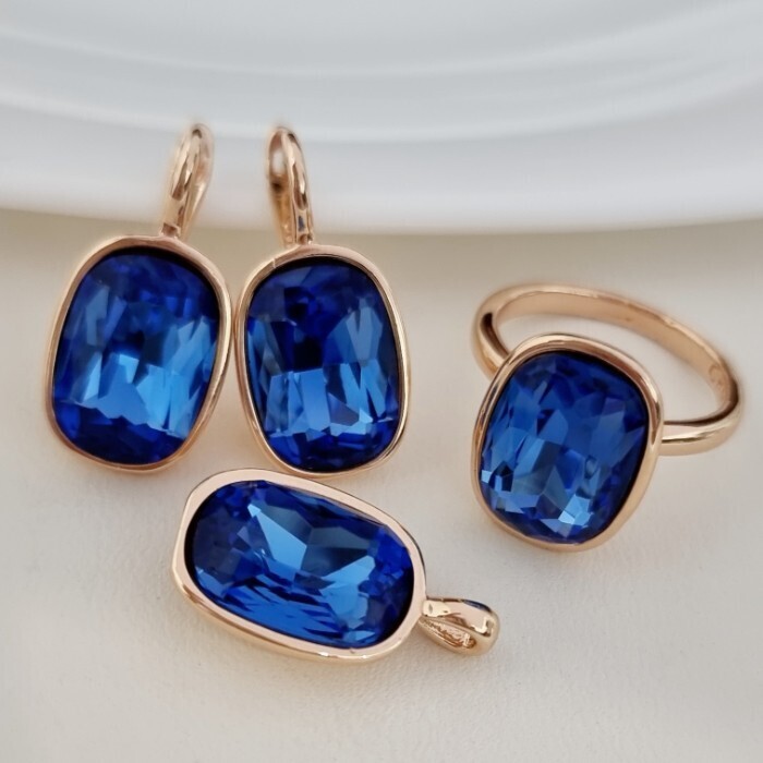Комплект ювелирной бижутерии коллекция "Дубай" серьги, кулон и кольцо 20 р, покрытие позолота, вставка: искусственный кристалл, цвет: синий, арт.314.861-20 2 фото