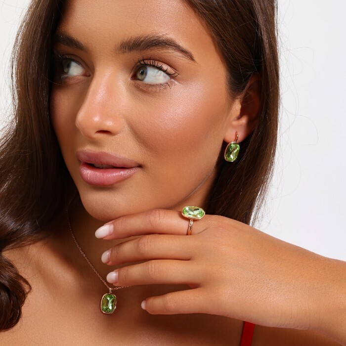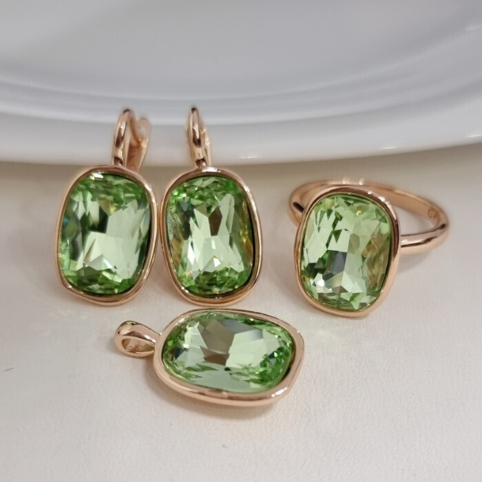 Комплект ювелирной бижутерии коллекция "Дубай" серьги, кулон и кольцо 17 р, покрытие позолота, вставка: искусственный кристалл, цвет: зеленый, арт.314.860-17 2 фото