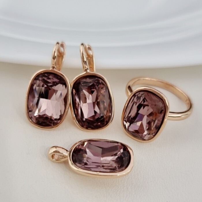 Комплект ювелирной бижутерии коллекция "Дубай" серьги, кулон и кольцо 17 р, покрытие позолота, вставка: искусственный кристалл, цвет: сиреневый, арт.314.858-17 2 фото