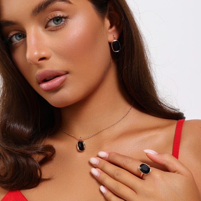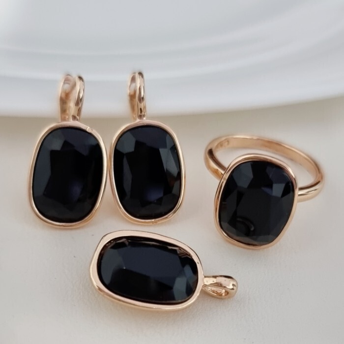 Комплект ювелирной бижутерии коллекция "Дубай" серьги, кулон и кольцо 17 р, покрытие позолота, вставка: искусственный кристалл, цвет: черный, арт. 314.954-17 2 фото
