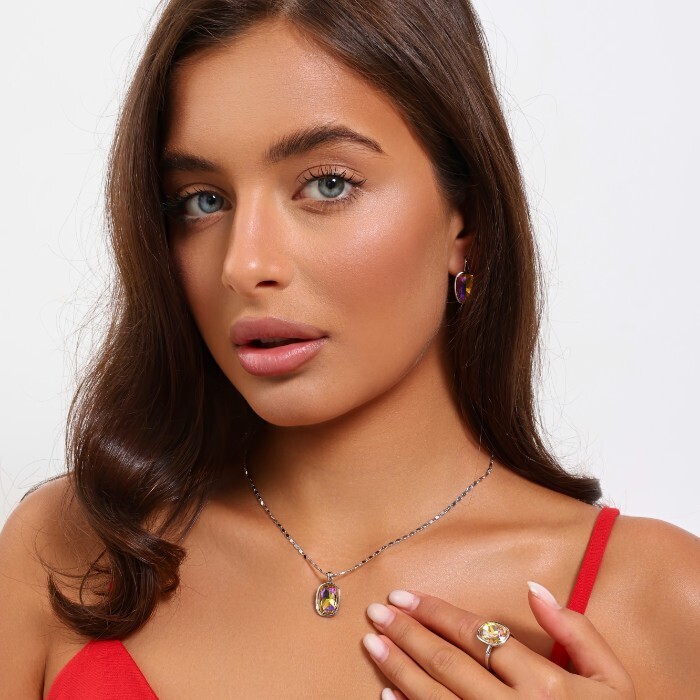 Комплект ювелирной бижутерии серьги, кулон и кольцо 19 р, покрытие посеребрение, вставка: искусственный кристалл, цвет: хамелеон, арт.314.868-19 2 фото
