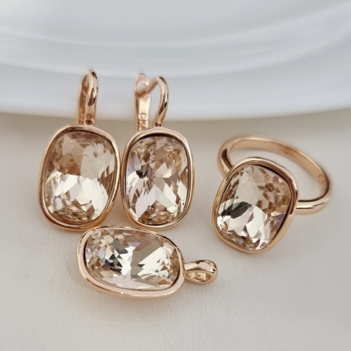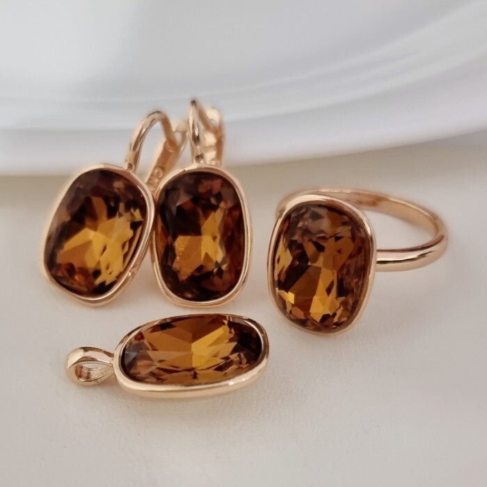 Комплект ювелирной бижутерии коллекция "Дубай" серьги, кулон и кольцо 20 р, покрытие позолота, вставка: искусственный кристалл, цвет: шампань, арт.314.862-20 2 фото