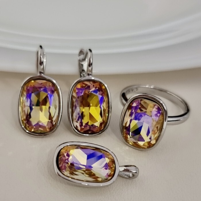 Комплект ювелирной бижутерии серьги, кулон и кольцо 18 р, покрытие посеребрение, вставка: искусственный кристалл, цвет: хамелеон, арт.314.868-18 2 фото