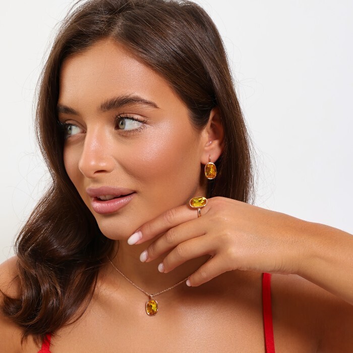 Комплект ювелирной бижутерии коллекция "Дубай" серьги, кулон и кольцо 17 р, покрытие позолота, вставка: искусственный кристалл, цвет: желто-оранжевый, арт.314.856-17 2 фото
