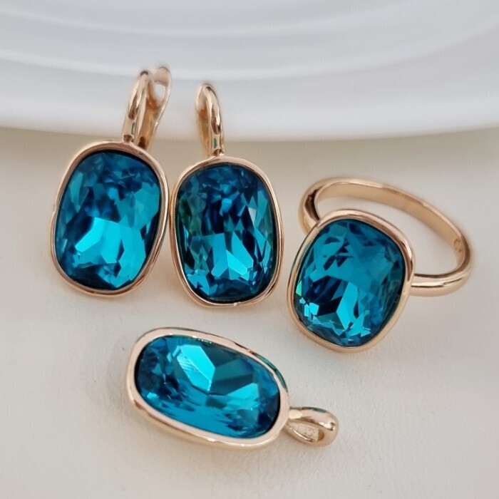 Комплект ювелирной бижутерии коллекция "Дубай" серьги, кулон и кольцо 18 р, покрытие позолота, вставка: искусственный кристалл, цвет: морская волна, арт.314.854-18 2 фото