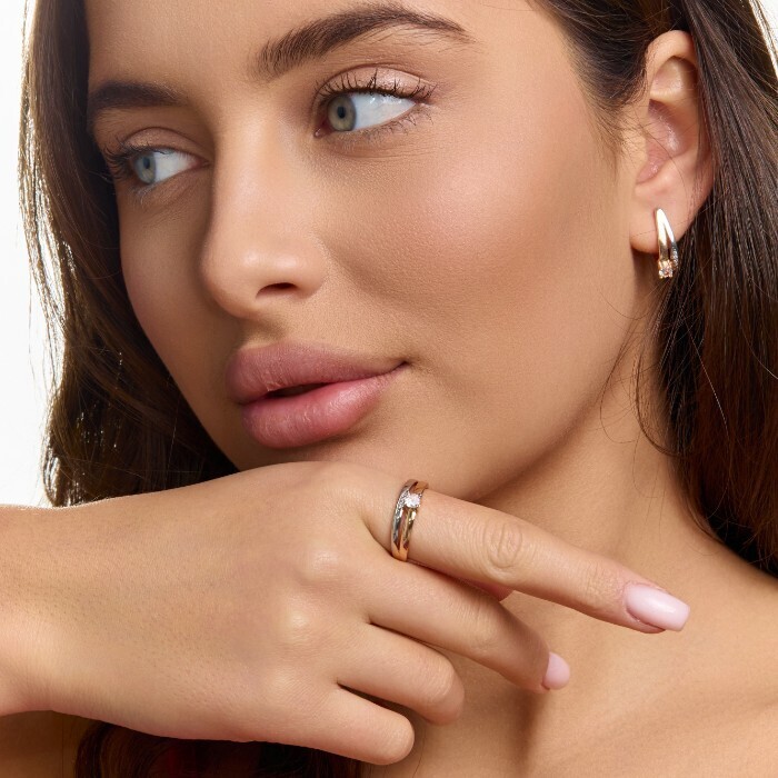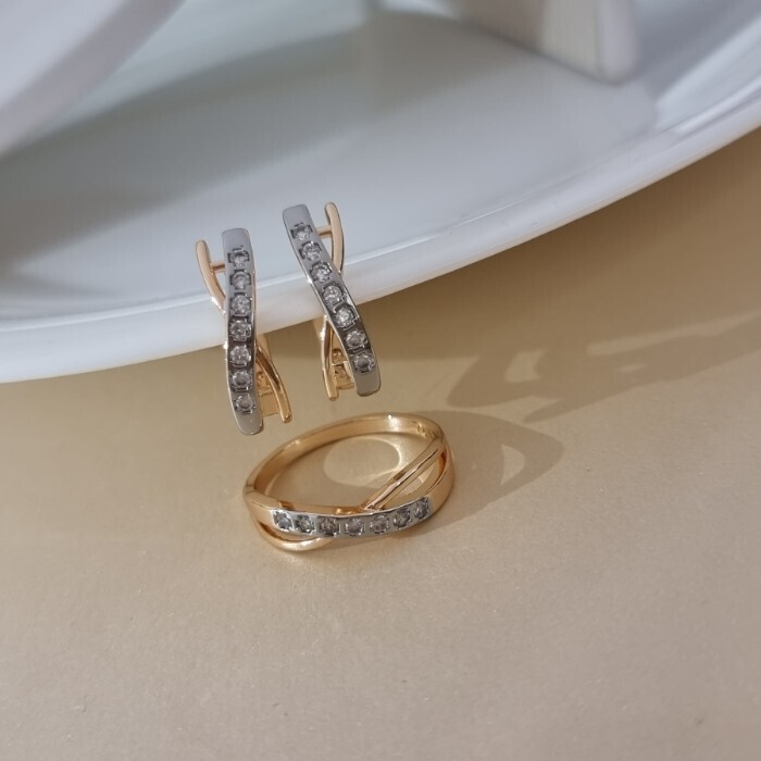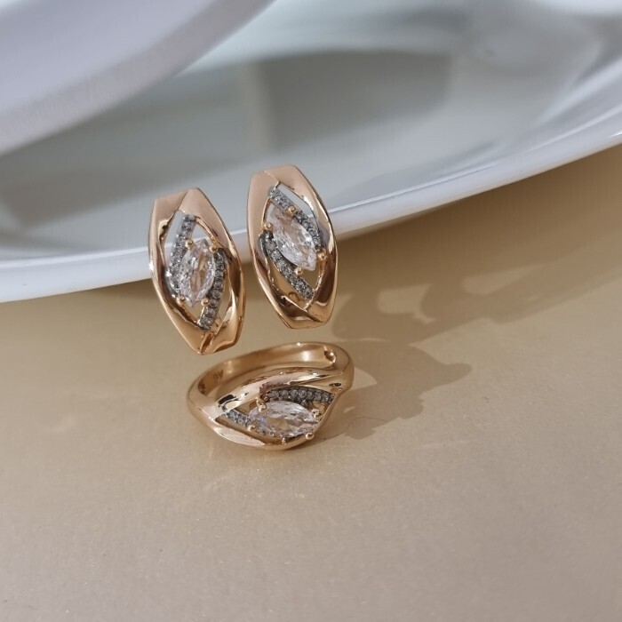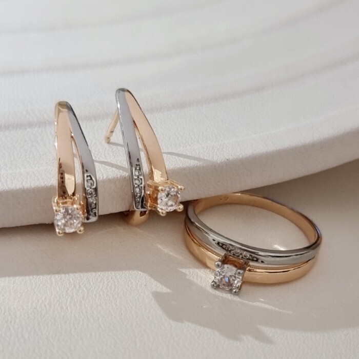 Комплект ювелирной бижутерии коллекция "Дубай" серьги и кольцо 17 р, покрытие позолота, вставка: цирконы, цвет: прозрачный, арт.215.703-17 2 фото
