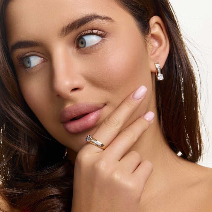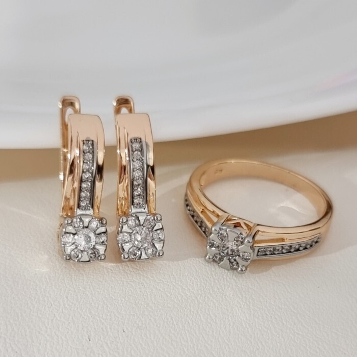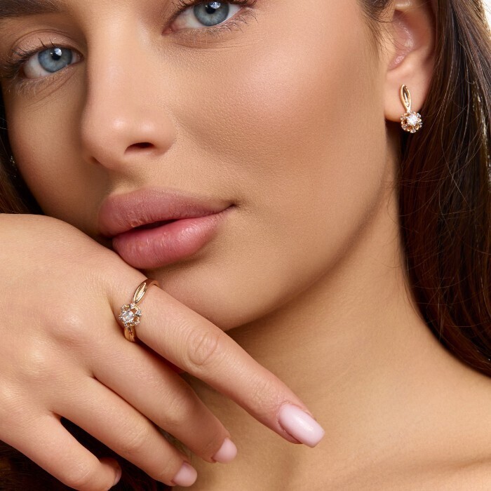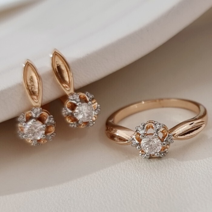 Комплект ювелирной бижутерии коллекция "Дубай" серьги и кольцо 17 р, покрытие позолота, вставка: фианиты и цирконы, цвет: прозрачный, арт.215.705-17 2 фото