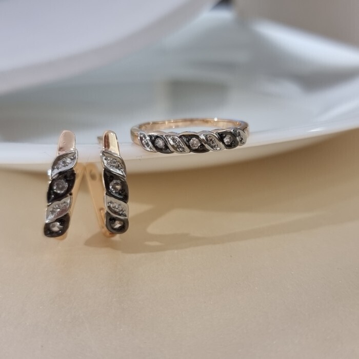 Комплект ювелирной бижутерии коллекция "Дубай" серьги и кольцо 17 р, покрытие позолота, вставка: фианиты и цирконы, цвет: черный и прозрачный, арт.215.674-17 2 фото