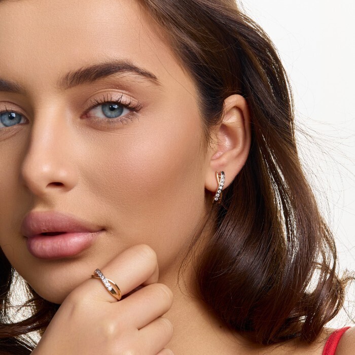 Комплект ювелирной бижутерии коллекция "Дубай" серьги и кольцо 19 р, покрытие позолота, вставка: фианиты и цирконы, цвет: прозрачный, арт.215.675-19 2 фото
