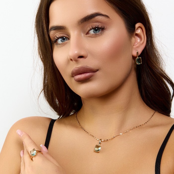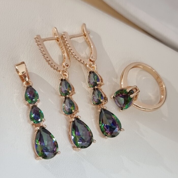 Комплект ювелирной бижутерии коллекция "Дубай" серьги, кулон и кольцо 17 р, покрытие позолота, вставка: фианиты и цирконы, цвет: хамелеон и прозрачный, арт.414.290-17 2 фото