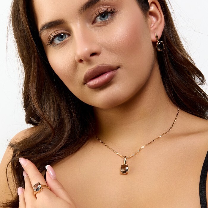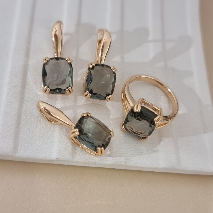 Комплект ювелирной бижутерии коллекция "Дубай" серьги, кулон и кольцо 18 р, покрытие позолота, вставка: стекло, цвет: серый, арт.414.320-18 2 фото