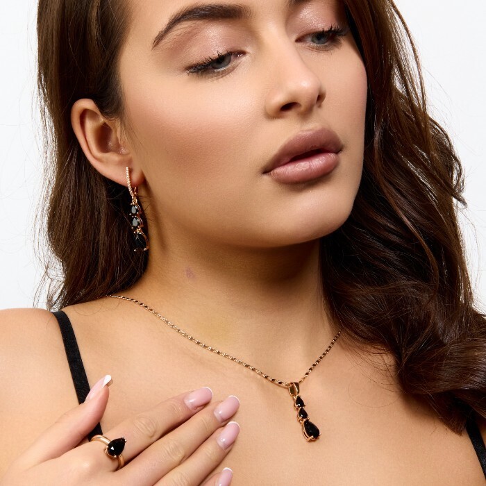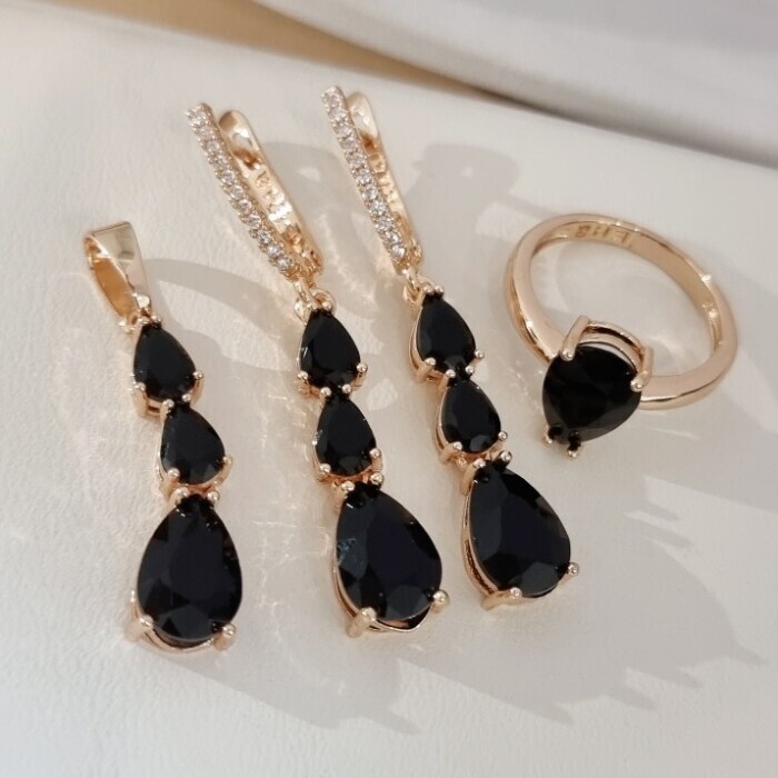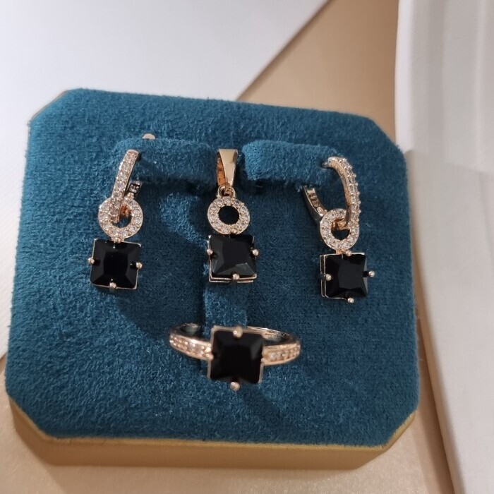 Комплект ювелирной бижутерии коллекция "Дубай" серьги, кулон и кольцо 17 р, покрытие позолота, вставка: фианиты и цирконы, цвет: черный и прозрачный, арт.414.284-17 2 фото