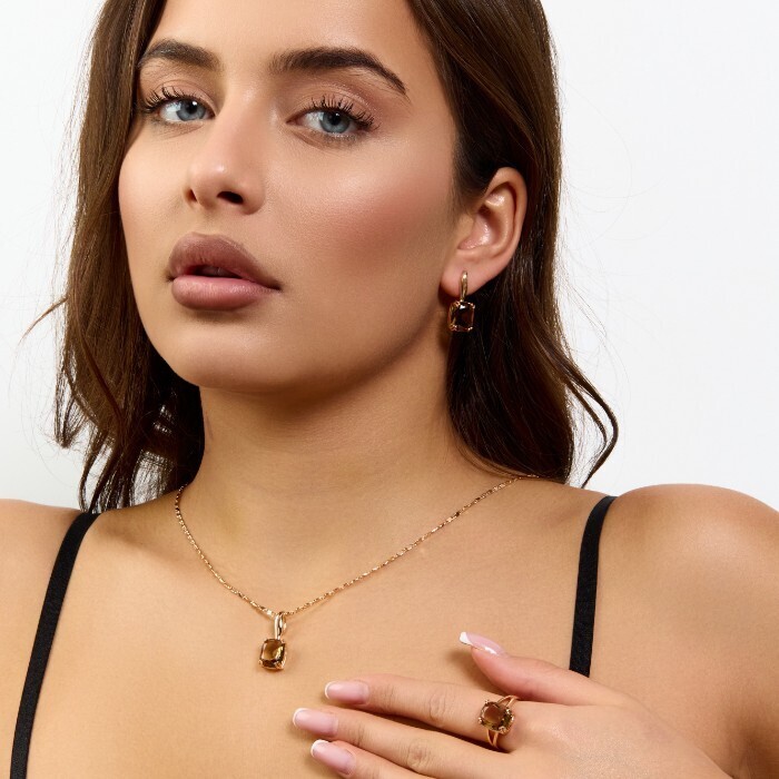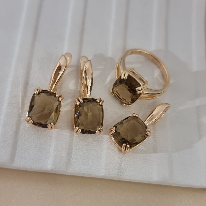 Комплект ювелирной бижутерии коллекция "Дубай" серьги, кулон и кольцо 17 р, покрытие позолота, вставка: стекло, цвет: коричневый, арт.414.321-17 2 фото