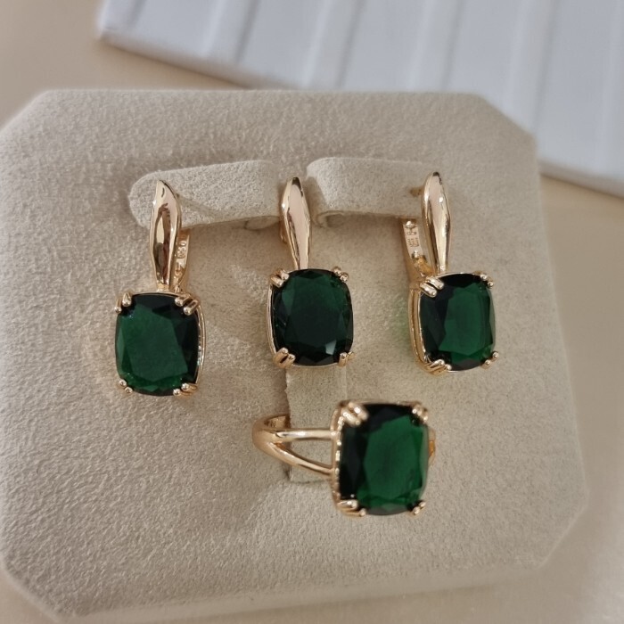 Комплект ювелирной бижутерии коллекция "Дубай" серьги и кольцо 17 р, покрытие позолота, вставка: стекло, цвет: изумрудный, арт.414.339-17 2 фото