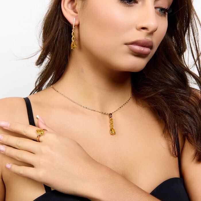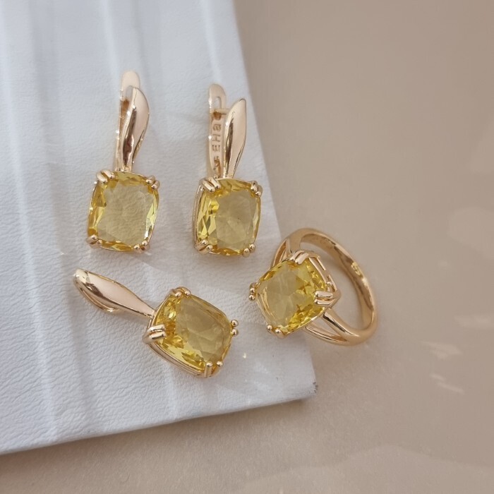 Комплект ювелирной бижутерии коллекция "Дубай" серьги, кулон и кольцо 19 р, покрытие позолота, вставка: фианиты и цирконы, цвет: желтый и прозрачный, арт.414.285-19 2 фото