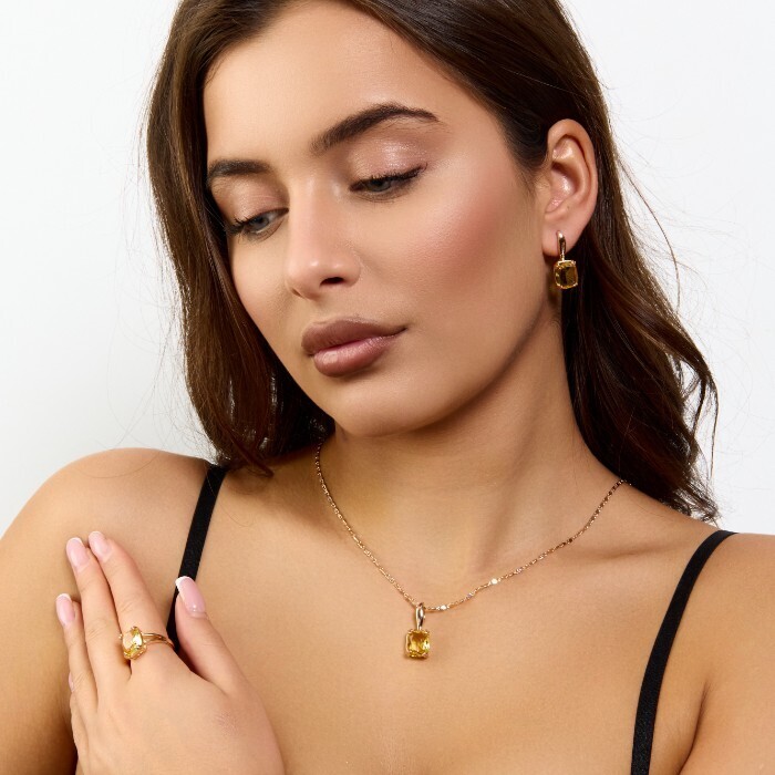 Комплект ювелирной бижутерии коллекция "Дубай" серьги, кулон и кольцо 17 р, покрытие позолота, вставка: фианиты и цирконы, цвет: желтый и прозрачный, арт.414.285-17 2 фото