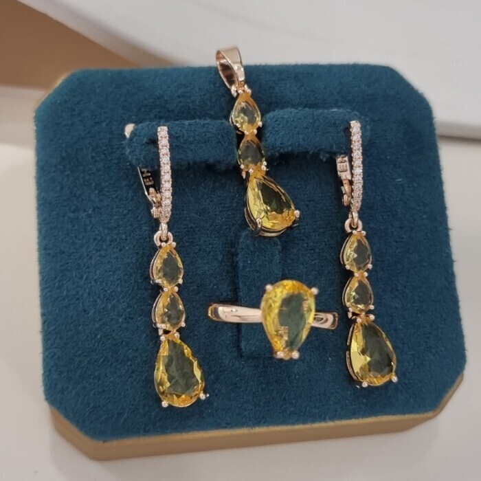 Комплект ювелирной бижутерии коллекция "Дубай" серьги, кулон и кольцо 20 р, покрытие позолота, вставка: фианиты и цирконы, цвет: желтый и прозрачный, арт.414.285-20 2 фото