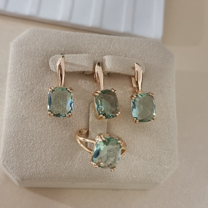 Комплект ювелирной бижутерии коллекция "Дубай" серьги и кольцо 20 р, покрытие позолота, вставка: стекло, цвет: салатовый, арт.414.341-20 2 фото