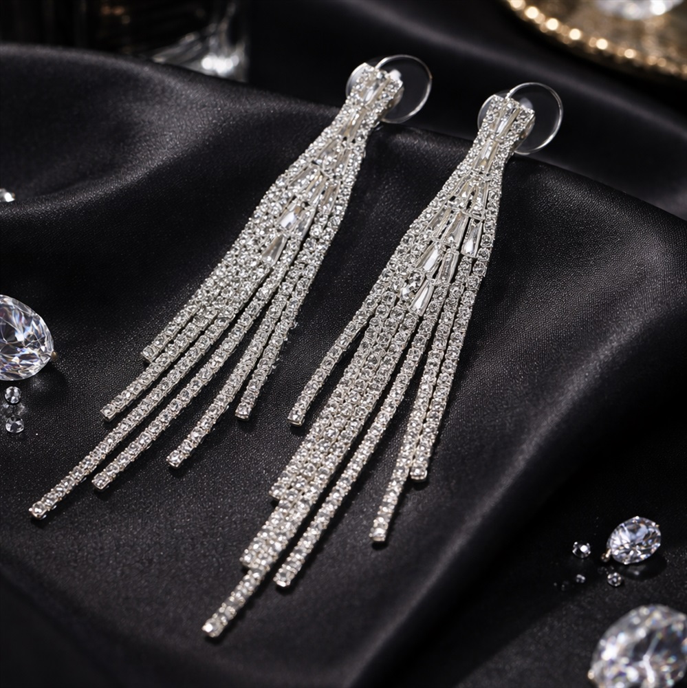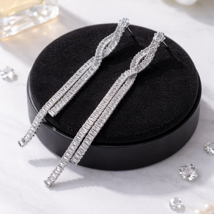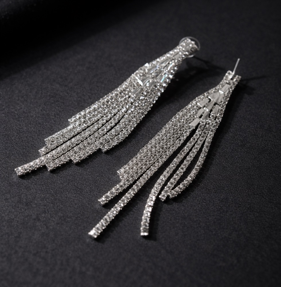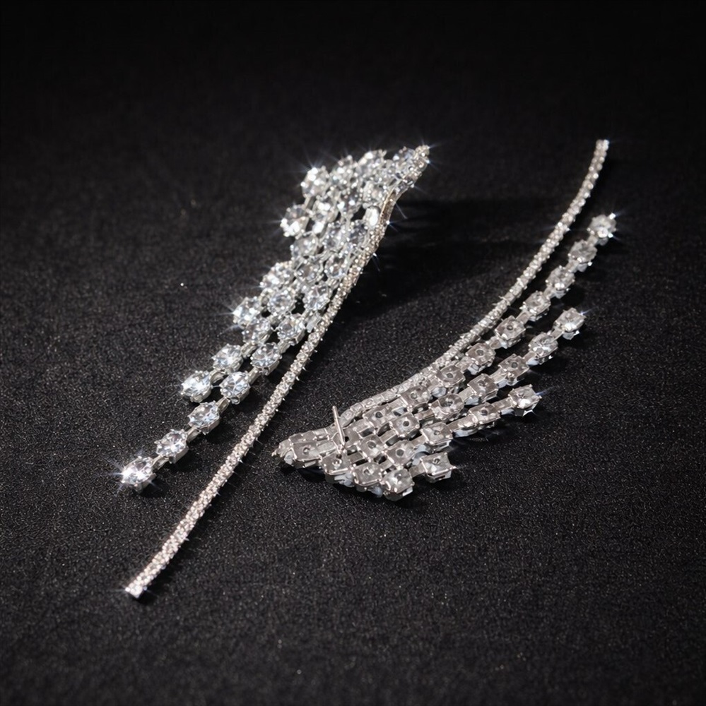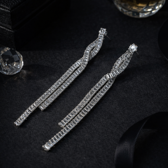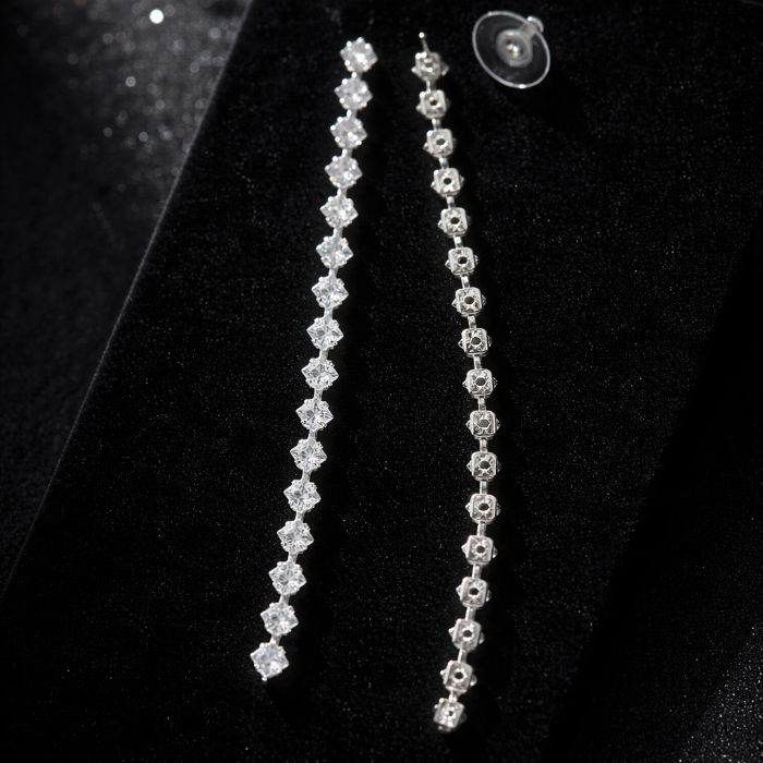 Серьги длинные висячие со стразами "Вечерние", цвет: серебристый и прозрачный, арт.012.058 2 фото