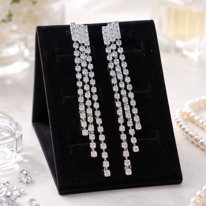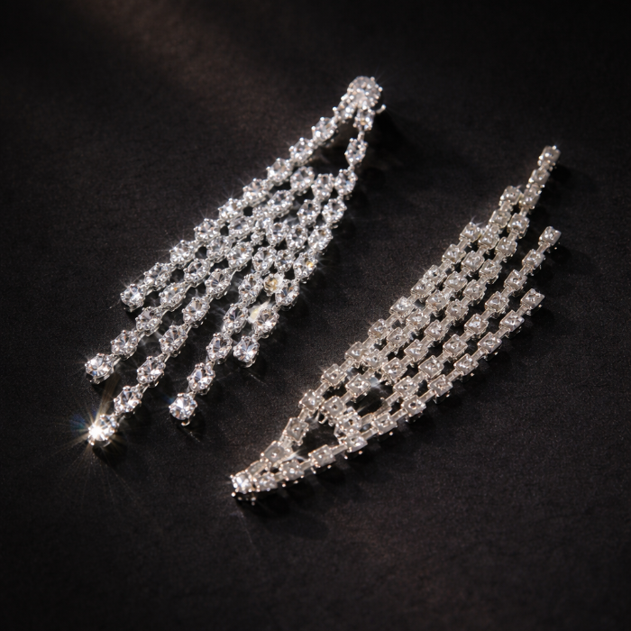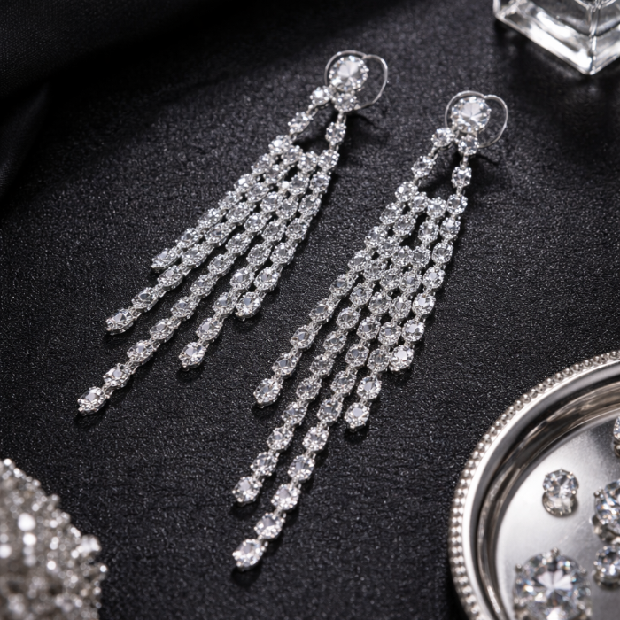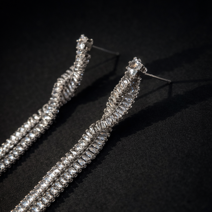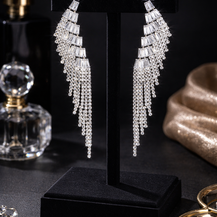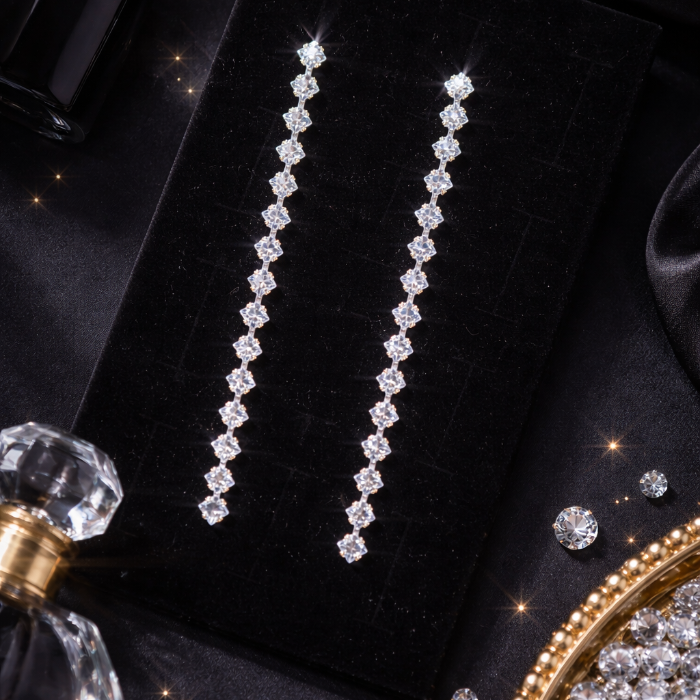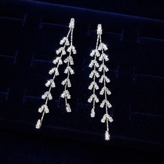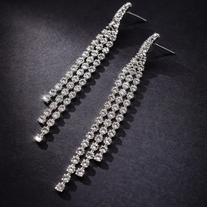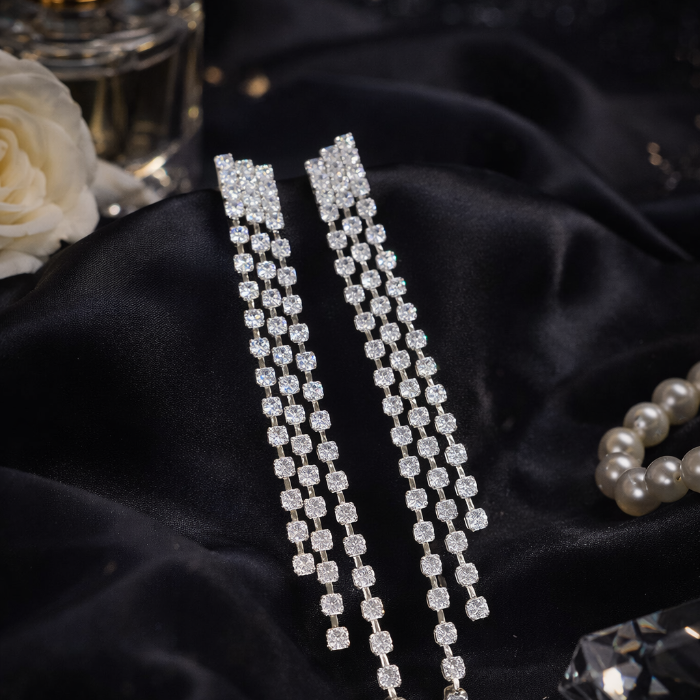 Серьги длинные висячие со стразами "Вечерние", цвет: серебристый и прозрачный, арт.012.058 2 фото