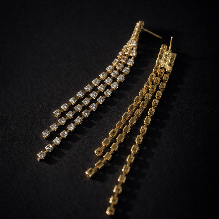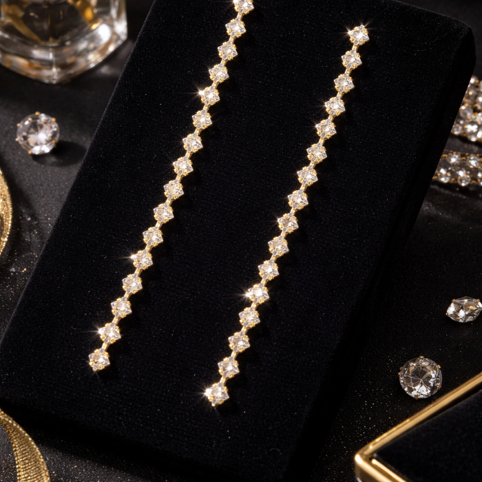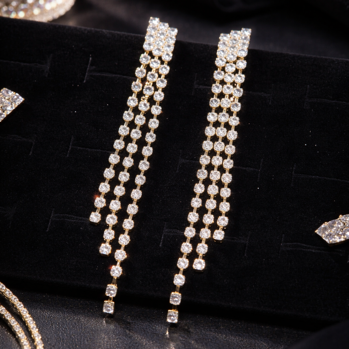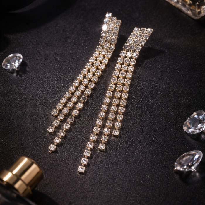 Серьги длинные женские вечерние со стразами, цвет: золотистый и прозрачный, арт.012.044 2 фото