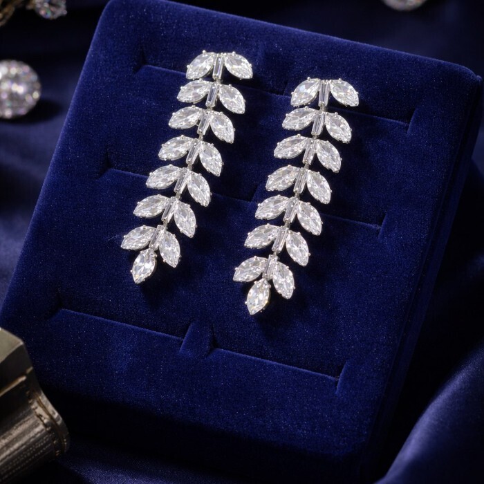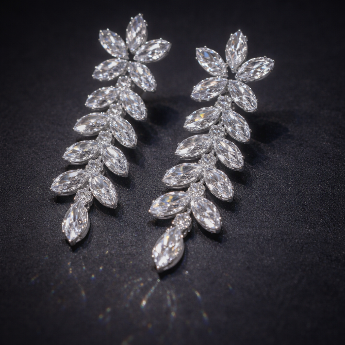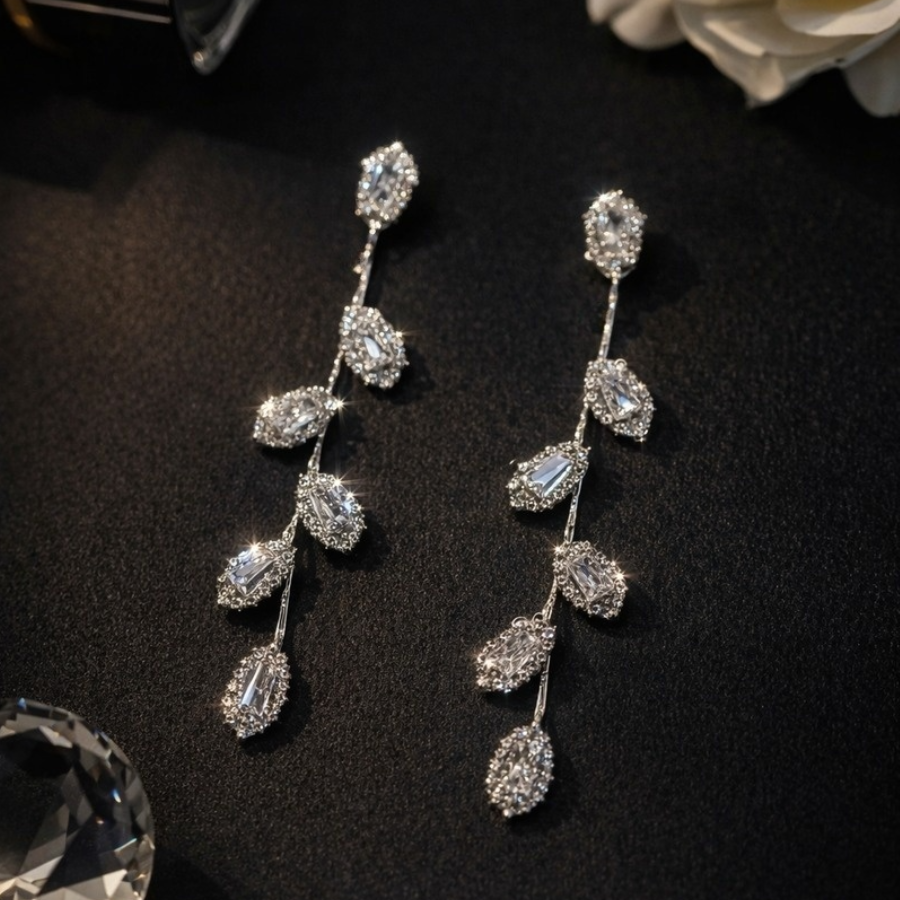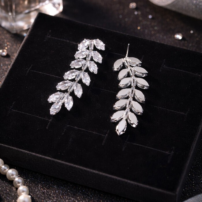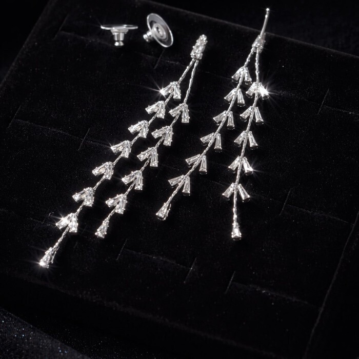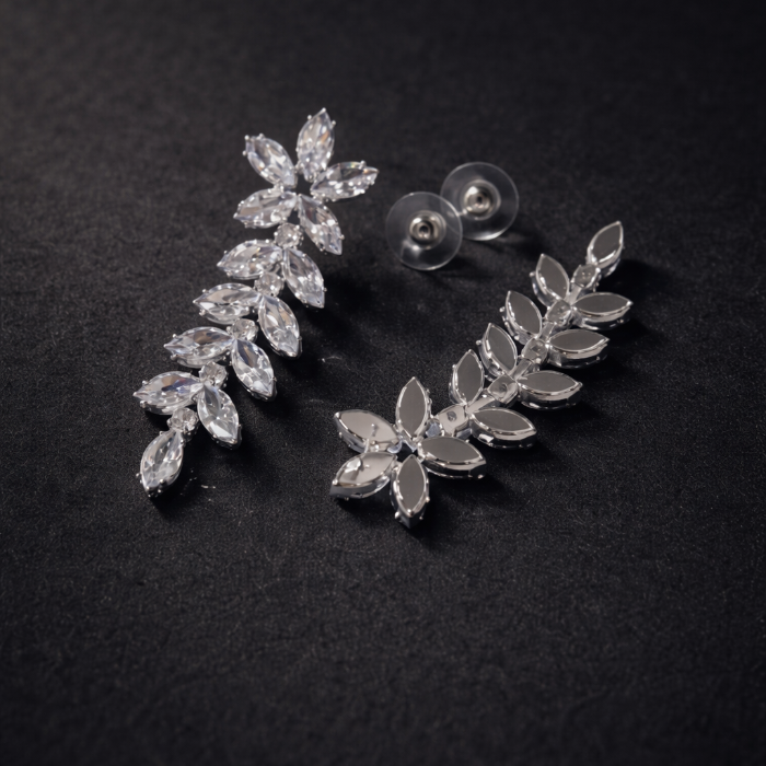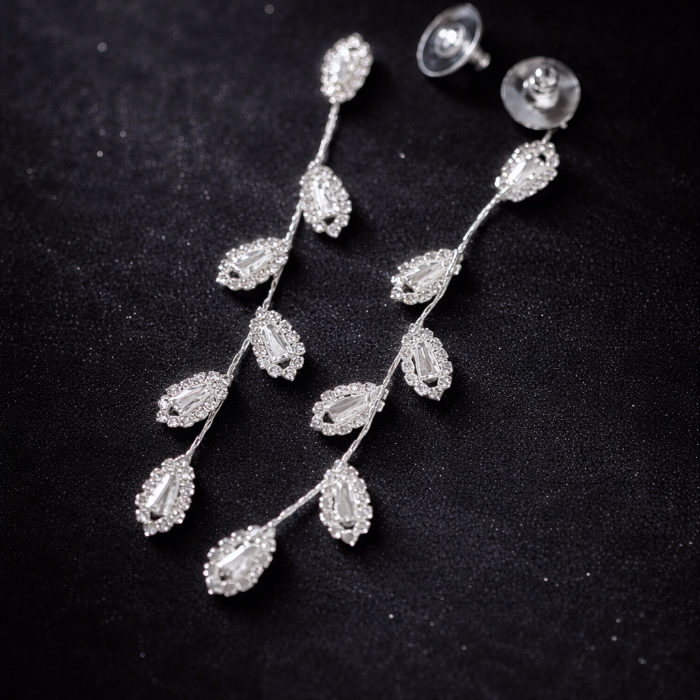 Серьги бижутерия висячие веточки с камнями, цвет: серебристый и прозрачный, арт.012.029 2 фото