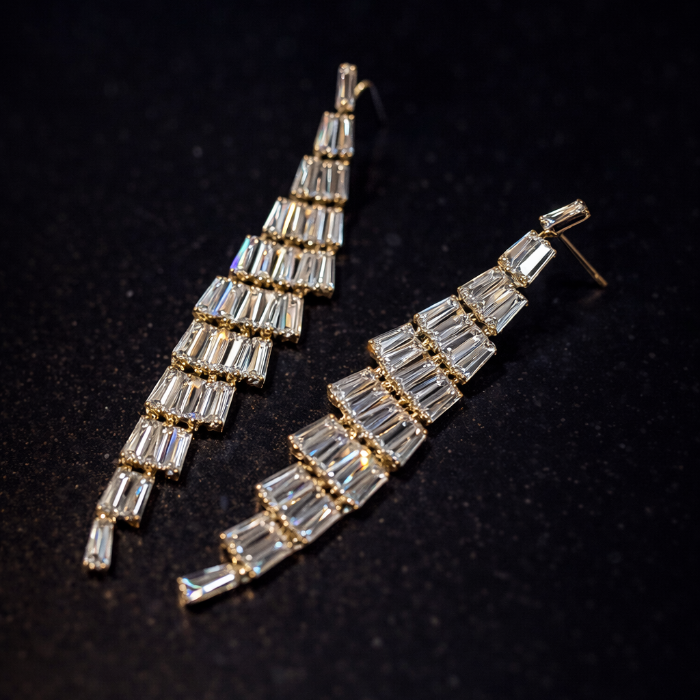Серьги длинные висячие со стразами "Вечерние", цвет: шампань, арт.012.018 2 фото