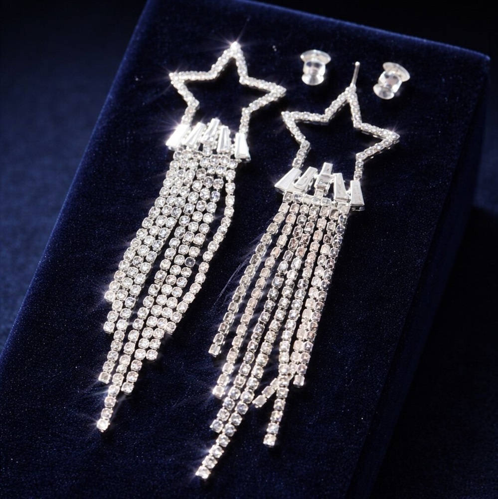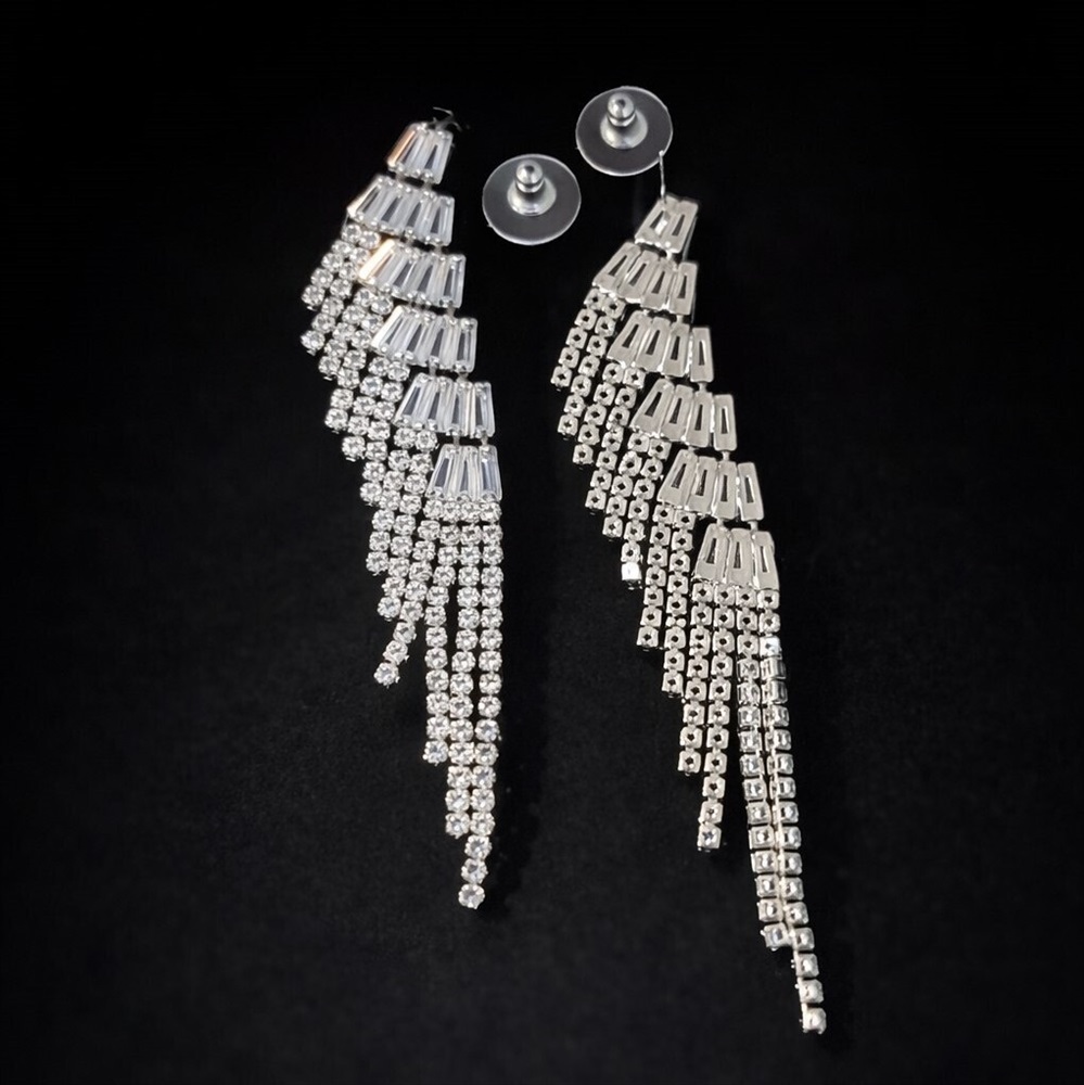 Серьги бижутерия висячие вечерние со стразами, цвет: серебристый и прозрачный, арт.012.062 2 фото