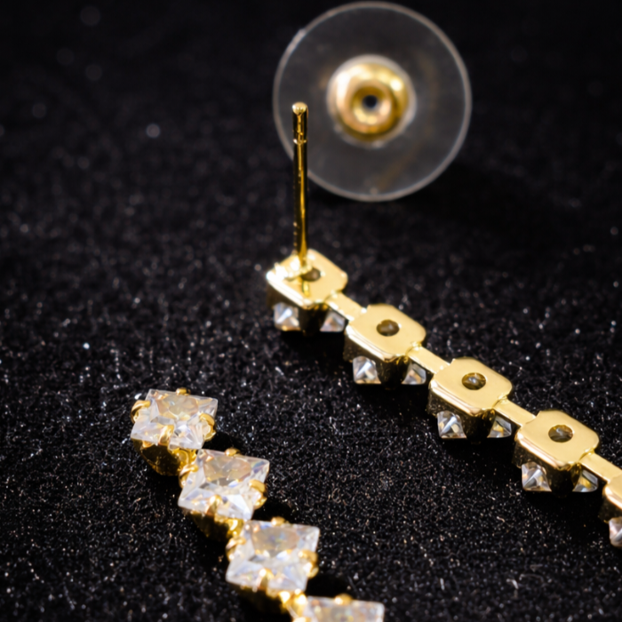 Серьги бижутерия висячие вечерние с камнями, цвет: золотистый и прозрачный, арт.012.070 3 фото