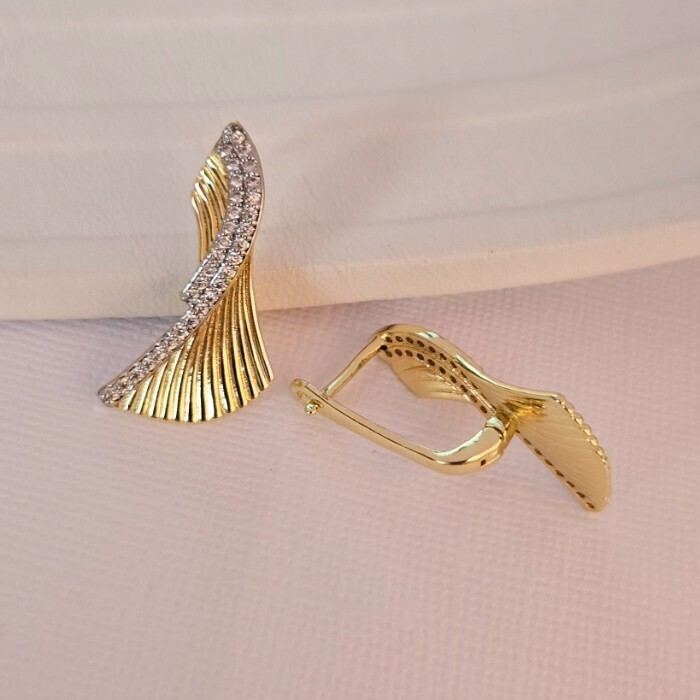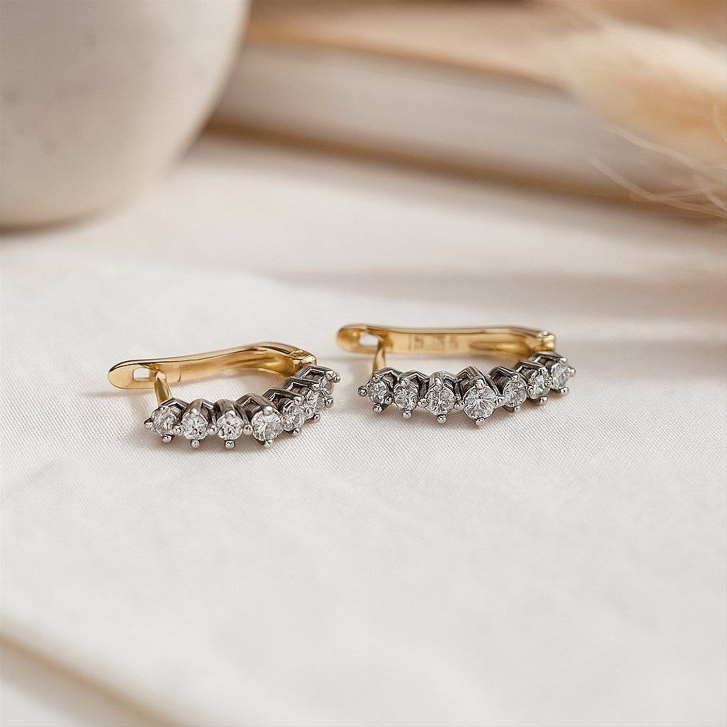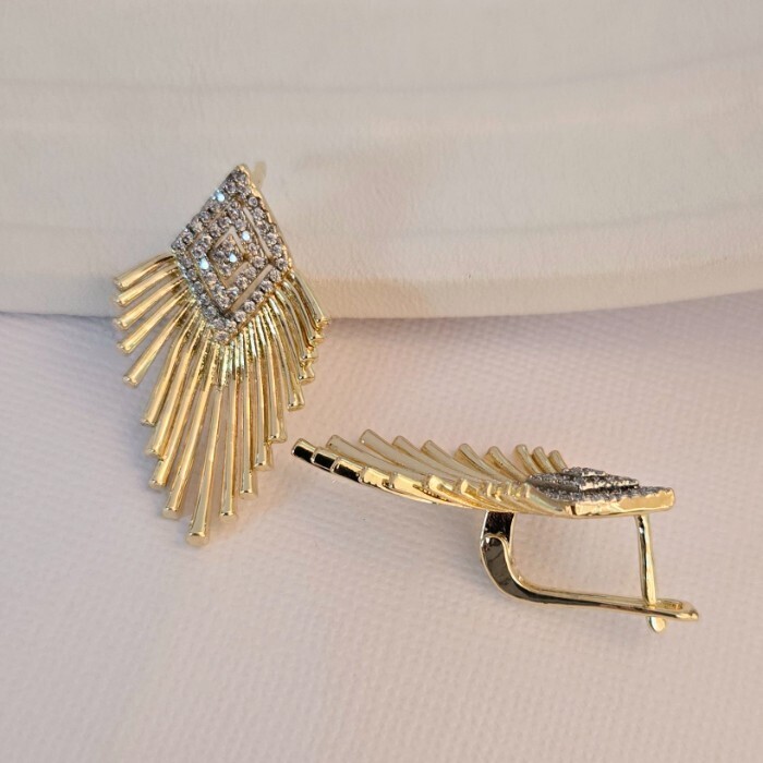 Серьги ювелирная бижутерия Итальянское золото (покрытие желтое 14к), вставка: фианиты, цвет: прозрачный, арт.216.423 2 фото